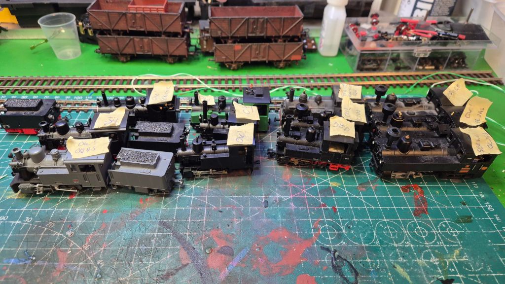 Sen blev det dax att se över resten av beståndet av smalspåriga ånglok som ska gå på banan. Först måste alla gås igenom, smörjas och göras driftdugliga, efter många år nerpackade. Samma process ska banans sex dieslar även genomgå. Samliga ska ju sen matchas in i banans tema.